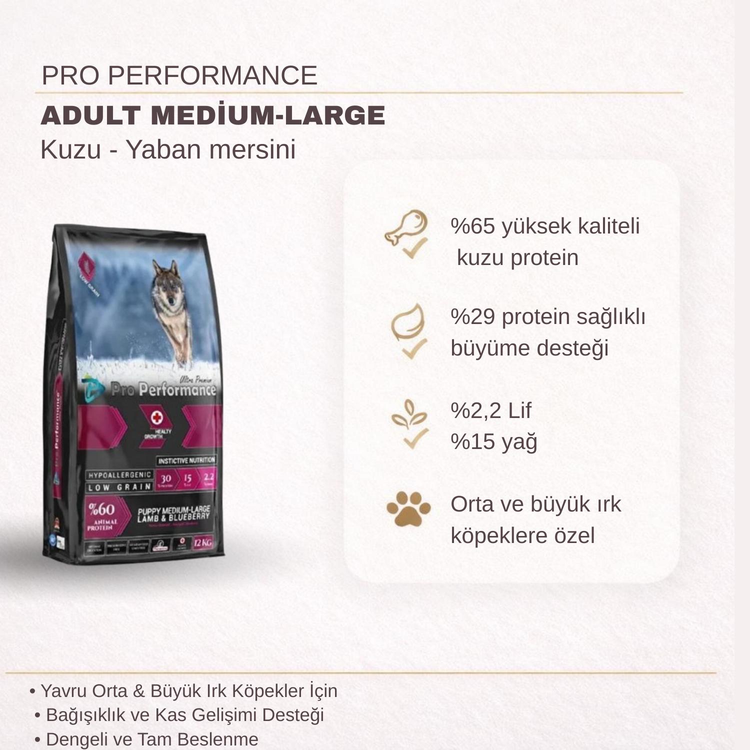 Properformance Puppy Dog Medium&Large Lamb&Blueberry 12 kg, yavru köpeklerin beslenme ihtiyaçlarını karşılamak için özel olarak formüle edilmiştir. Kuzu etli ve yabanmersini ile harmanlanmış muhteşem lezzeti ile köpekleriniz için kusursuz bir beslenme sunar.